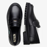 Pebbled black finish / double stitched upper / Removable double-sided Noskin coin in strap / Vibram lug sole / can be re-soled / water-resistant / fits true to size / ethically hand-crafted in Brazil
